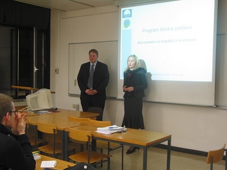 Boris Šušmak pa je predaval o Eko managementu na primeru plaž in marin – Morda zastava; mednarodni program, ki želi pri ljudeh vzpodbujati aktiven odnos do naravnega okolja.