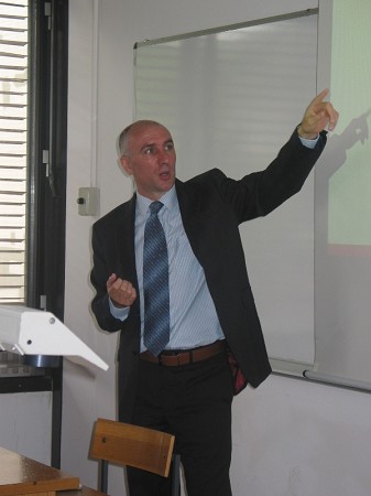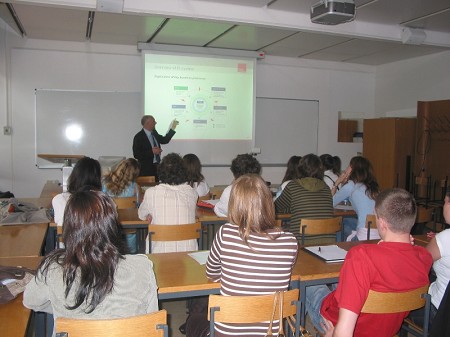 Pri predmetu Slovenian Economy, ki se izvaja v angleškem predmetu in je namenjen predvsem tujim študentom na izmenjavi, smo 15. maja gostili gosta iz prakse gospoda Davida Buckleya, direktorja financ v podjetju Studio Moderna. Gospod Buckley je Irec po rodu, ki že 14 let živi v Sloveniji. Delal je v različnih slovenskih podjetjih, med drugim tudi v Novi ljubljanski banki. Gospod Buckley je v zelo zanimivem predavanju predstavil proces internacionalizije slovenskega podjetja Studio Moderna, ki prodaja izdelke v 21 državah. Slovenski študenti podjetje zagotovo najbolj poznajo podjetje Studio Moderna zaradi direktnega TV marketinga (Top Shop).