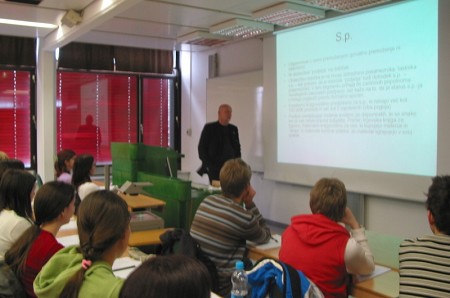 Predavanje, ki so ga študentje z zanimanjem poslušali, je bilo namenjeno predstavitvi problemov, s katerimi se srečuje samostojni podjetnik pri svojem delovanju in pomenu računovodstva za njegovo uspešno delovanje.