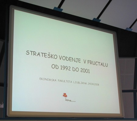 Pri predmetu Strateški management, katerega nosilec je dr. Danijel Pučko, smo gostili go. Cvetano Rijavec, predsednico uprave Ljubljanskih mlekarn, d.d. Tema predavanja je bila Strateško vodenje v Fructalu od 1992 do 2001.