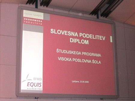 Na Ekonomski fakulteti v Ljubljani je potekala podelitev diplom za študijski program Visoka poslovna šola. Diplome je podelil dekan fakultete prof. dr. Dušan Mramor, slavnostna govornica prireditve pa je bila Mirjana Dimc Perko, članica uprave družbe Gorenje, odgovorna za področje financ in ekonomike.
