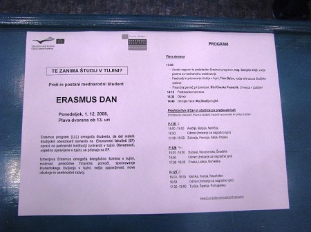 V ponedeljek, 1. decembra 2008, smo na Ekonomski fakulteti Univerze v Ljubljani organizirali Erasmus dan.