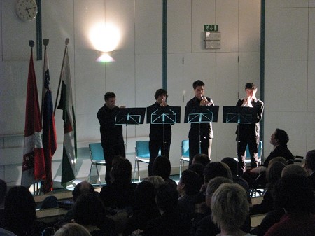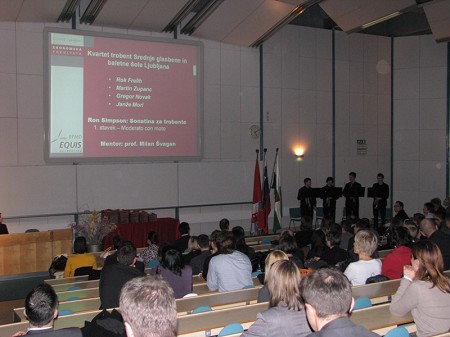 Za popestritev večera je poskrbel kvartet trobent Srednje glasbene in baletne šole Ljubljana v sestavi Roka Freliha, Martina Zupanca, Gregorja Novaka in Janžeja Morija, pod mentorstvom prof. Milana Švagana.