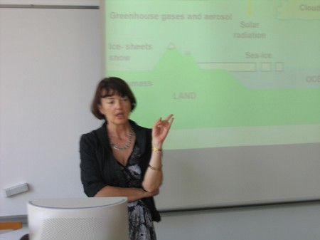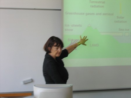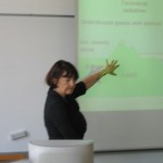 Dr. Bogatajeva je študentom predstavila koncepte s področja klimatskih sprememb, svetovnih organizacij in pogodb, ki posegajo na omenjeno področje ter težave pri merjenju ekonomske blaginje s kriterijem BDP.