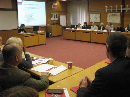 Ekonomsko fakulteto je v sklopu študijske poti obiskala delegacija zaposlenih z Instituta ekonomskih nauka Beograd, pod vodstvom prof. dr. Dejana Erića. Najprej jih je sprejel in nagovoril dekan EF, prof. dr. Dušan Mramor, nato pa je sledila predstavitev Ekonomske fakultete in njenih krovnih dejavnosti. Namen obiska je bil v ohranitvi dobrih odnosov ter nadaljnjem sodelovanju Instituta z Ekonomsko fakulteto, delegacijo pa je zanimalo predvsem področje raziskovanja. Po končani uradni predstavitvi so skupino sprejeli tudi pedagogi prof. dr. Nevenka Hrovatin, doc. dr. Jelena Zorič, prof. dr. Marko Košak, prof. dr. Ivan Ribnikar.