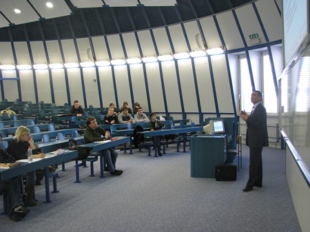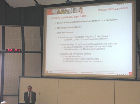 Pri predmetu Tehnike in oblike mednarodnega poslovanja, katerega nosilka je dr. Maja Makovec Brenčič, je predaval gost Andre-Marc Prudent, podpredsednik SKB Societe General. Izvedel je predavanje na temo: Kako posluje mednarodna banka in kako premošča različnosti trgov, primer SKB Societe General.