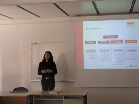 Pri predmetu Finančne institucije, katerega nosilec je prof. dr. Marko Košak, je kot gostja iz prakse predavala mag. Polona Peterle, članica uprave Ljubljanske borze d.d. Mag. Peterle je v svojem predavanju predstavila značilnosti razvoja in delovanja Ljubljanske borze ter nekatere novosti, ki jih bo v letošnjem letu borza uvedla pri svojem poslovanju.