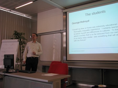 Projekt se je začel izvajati oktobra 2008 in se bo končal 30. septembra 2011. V okviru projekta je evropskim in korejskim dodiplomskim študentom omogočeno, da združijo študij in opravljanje prakse v tujini. Ekonomska fakulteta vsak semester pošlje tri študente na izmenjavo in prakso v Korejo. Vsi udeleženci programa (študentje, profesorji, strokovno osebje) dobijo štipendijo in povrnjene potne stroške. Pričakuje se, da bo projekt vzbudil povečano zavedanje Koreje in Evrope kot izbiro destinacije za študij v tujini, kar bo omogočilo večjo dolgoročno mobilnost študentov in osebja med EU in Korejo ter izboljšalo zaposljivost sodelujočih študentov, okrepilo sodelovanje med partnerskimi univerzami, povečalo internacionalizacijo univerz, mest ter izboljšalo sodelovanje in internacionalizacijo lokalne industrije. Projekt je financiran s strani Evropske unije, v višini 400.000 €.