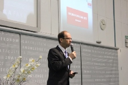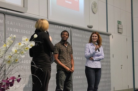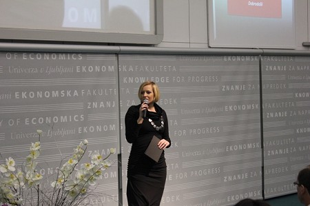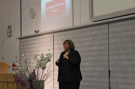 Po koncu glavne predstavitve sta sledili še vsebinski predavanji, s katerima smo dijakom približali ekonomsko-poslovne vsebine in jim obenem predstavili, kako na fakulteti poteka študijski proces. Prof. dr. Metka Tekavčič se je skupaj z gostom Matjažem Rakovcem, predsednikom uprave Zavarovalnice Triglav pogovarjala o tem, Kaj dela manager, prof. dr. Mateja Drnovšek pa je s pomočjo mag. Roka Stritarja in mag. Blaža Zupana pripravila delavnico na temo Biti podjetnik – kako ustvarjati na svojem?