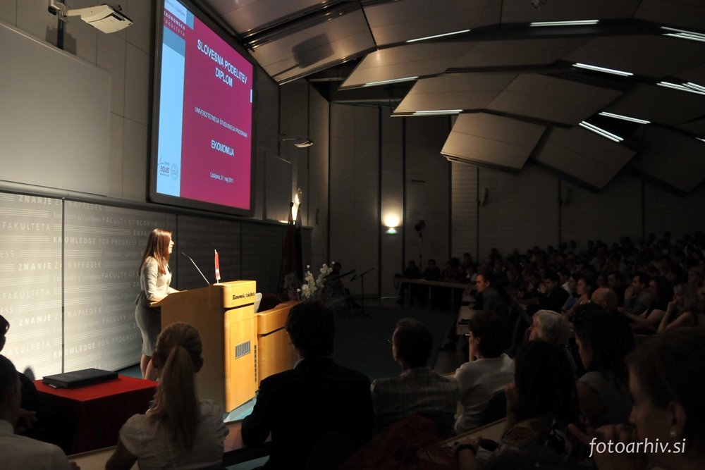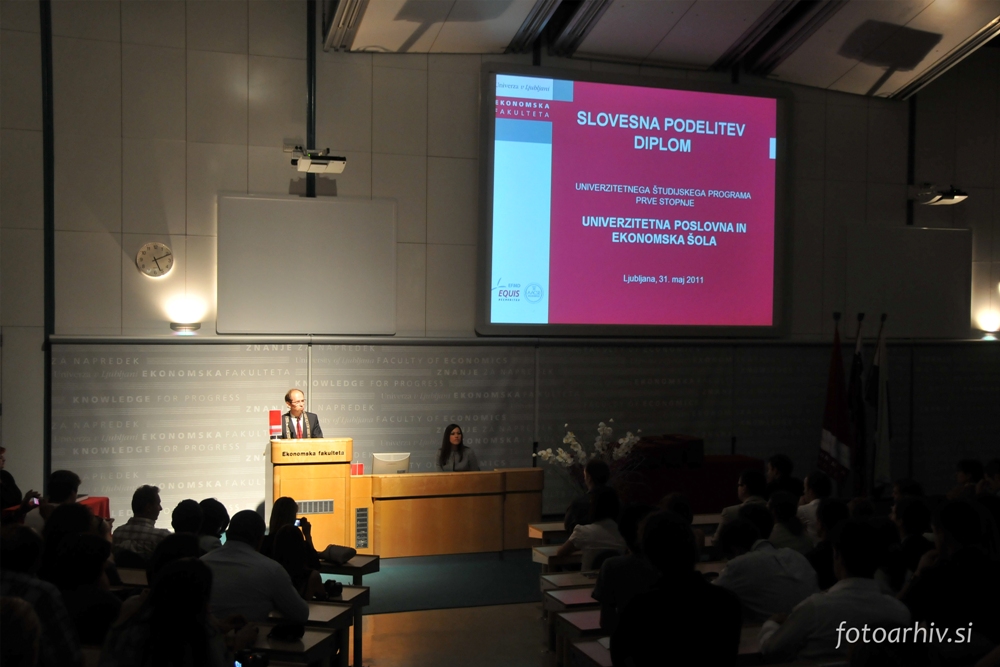 Na Ekonomski fakulteti je v torek, 31. maja 2011  potekala slovesna podelitev diplom. Diplomske listine so ob 17. uri prejeli diplomanti programa UPEŠ, ob 19. uri pa diplomanti programa Ekonomija. Zbrane je najprej nagovoril dekan EF prof. dr. Dušan Mramor, slavnostni govornik pa je bil tokrat dr. Aleš Ekar, predsednik uprave Jelovice d.d. Dogodek je popestril tudi nastop mladega glasbenika Jaka Mihelača iz Srednje glasbene in baletne šole Ljubljana, ki je na kitaro zaigral skladbi Café št.6 in Tarantelle (mentor Anton Črnugelj, prof.).