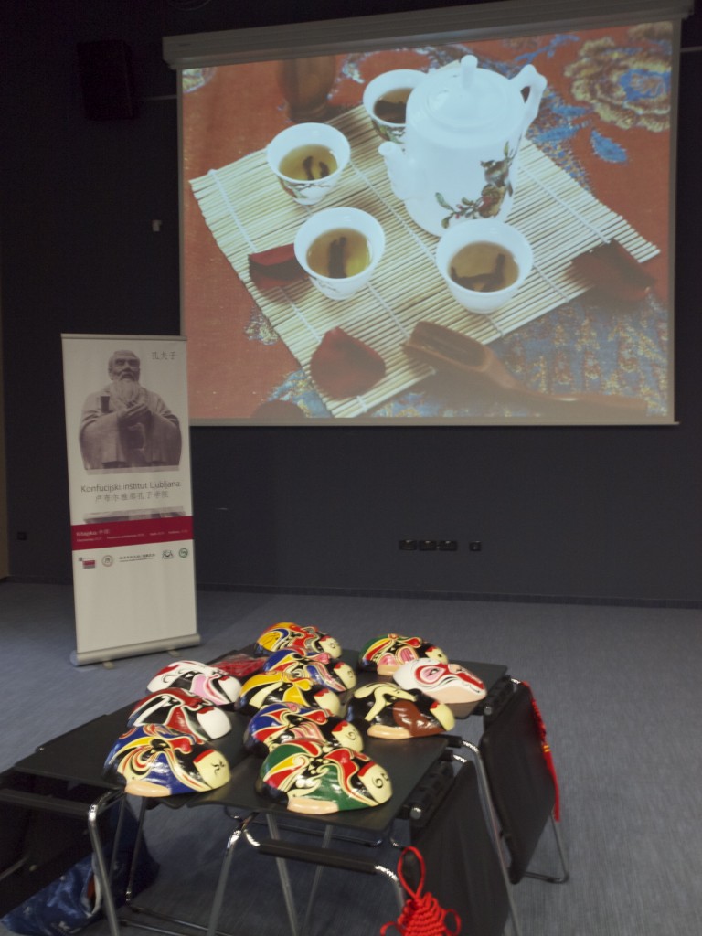 Obiskovalci so lahko sodelovali v nagradnem kvizu – Ugani pomen kitajskih mask in spoznali možnosti izobraževanja o Kitajski (učenje kitajskega jezika in kulture, delavnice kaligrafije in podobno), ki jih ponujata Konfucijski inštitut Ljubljana in Oddelek za azijske in afriške študije Filozofske fakultete Univerze v Ljubljani. Dogodek se je nadaljeval v ritmih tradicionalnega kitajskega glasbenega instrumenta »guzheng« (inštrument podoben citram). Glasbenica ga. Wang Xuan, ki prihaja iz mesta Chengdu, nam je zaigrala na ta edinstveni inštrument in s tem napovedala gosta iz Mestne občine Ljubljana. Gospod Klement Čepon nam je v luči 30. obletnice pobratenih mest Ljubljana – Chengdu, nazorno predstavil mesto Chengdu, prestolnico kitajske province Sichuan, s katerim ima Ljubljana že od leta 1981 vzpostavljene prijateljske odnose.