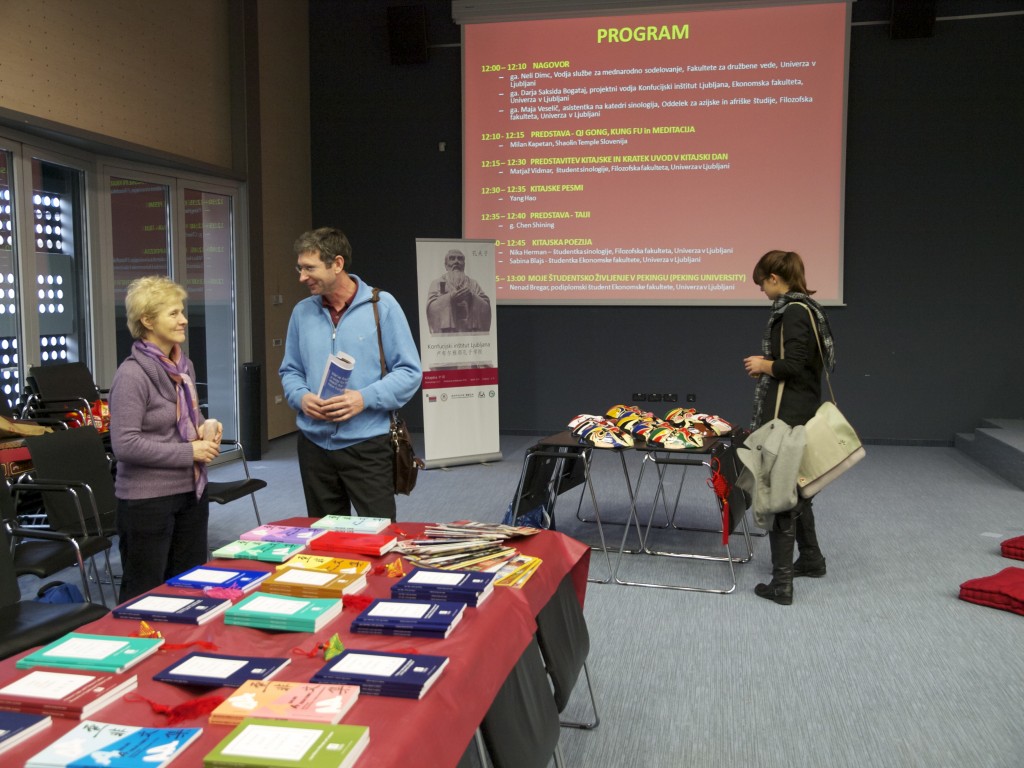 Konfucijski inštitut Ljubljana je skupaj s Fakulteto za družbene vede in Filozofsko fakulteto Univerze v Ljubljani organiziral že drugi Kitajski dan. Dogodek je potekal v torek 8. novembra med 12:00 – 15:00 uro v Veliki dvorani Fakultete za družbene vede. Obiskovalci so imeli možnost pobliže spoznati kitajsko kulturo in običaje preko različnih delavnic in predstavitev.