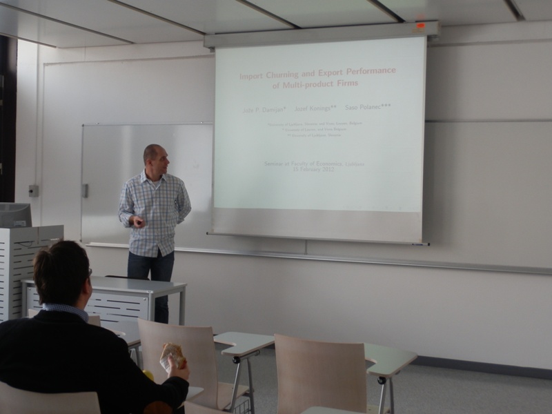 V sredo, 15.02. 2012 je prof. dr. Jože Damijan (EF) predstavil članek: ˝Import Churning and Export Performance of Multi-product Firms˝.Več o seminarju si lahko pogledate v priloženi datoteki in v galeriji.