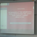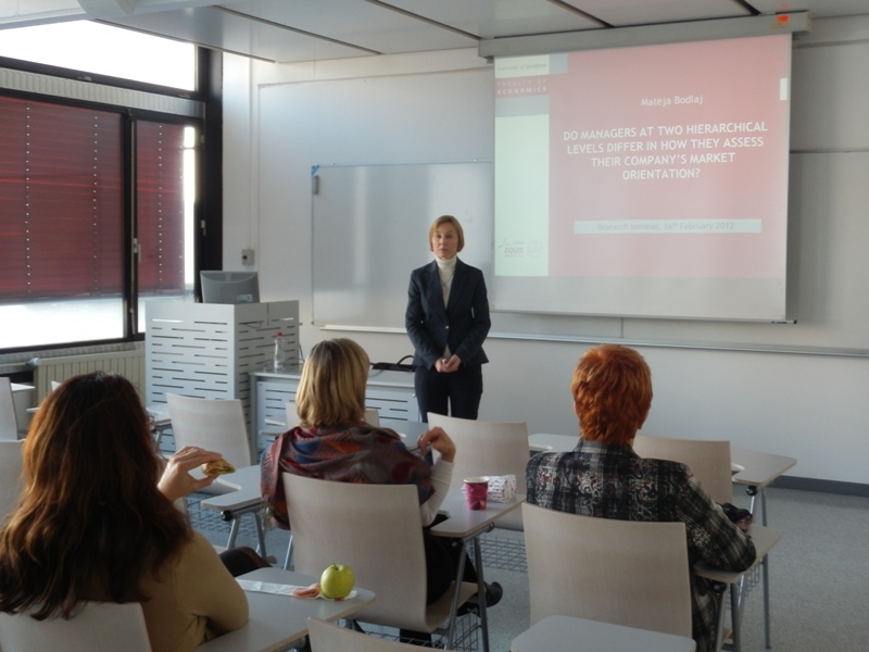 V četrtek, 16.02. 2012 je dr. Mateja Bodlaj (EF) predstavila raziskavo: ˝Do managers at two hierarchical levels differ in how they assess their company`s market orientation? ˝. Več o seminarju si lahko pogledate v priloženi datoteki in v galeriji.