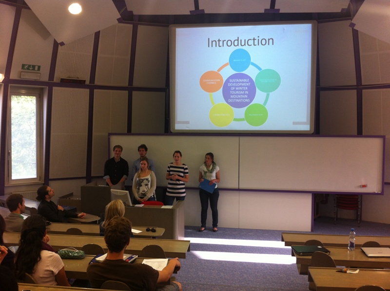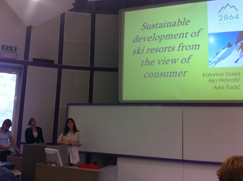 V četrtek, 7.6.2012, je potekala predstavitev poslovnih projektov, ki so jih študenti naredili pri predmetih Trajnostni turizem in Sustainable tourism. Projekt je nastal v sodelovanju s g. Anžetom Čoklom, direktorjem podjetja MPM Engineering, d.o.o., ki je lastnik Bohinj Park Eko Hotela in nosilec projekta izgradnje trajnostno naravnanega smučišča 2864.