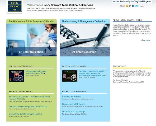 Seminarji ponudnika Henry Stewart Talks, ki jih izvajajo številni strokovnjaki in profesorji, so dostopni: