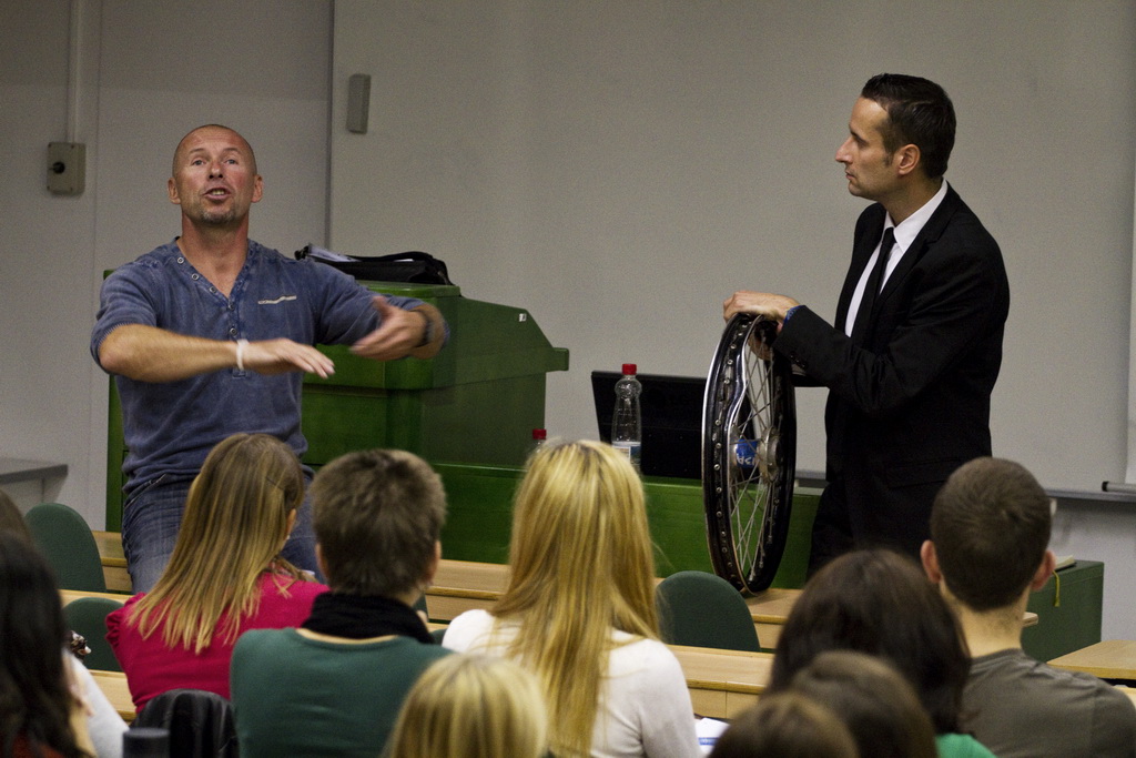 Pri podiplomskem predmetu Napredni management, katerega nosilec je prof. dr. Vlado Dimovski, smo 8. oktobra v okviru predavanj z naslovom »Razvoj vodij: pristop življenjskih zgodb« gostili izkušenjsko raznovrstne goste iz prakse. Predavatelj mag. Matej Grošelj je po teoretičnem delu, kjer so slušatelji spoznali razvoj pristopa življenjskih zgodb in pomen formativnih dogodkov na razvoj vodij in njihovo modeliranje na sledilce, moderiral pogovore s »Puščavskim lisjakom« Miranom Stanovnikom, tržnikom in enim največjih poznavalcev relija Dakar pri nas Petrom Kavčičem ter paraolimpijskim svetovnim rekorderjem v plavanju Darkom Đurićem.
