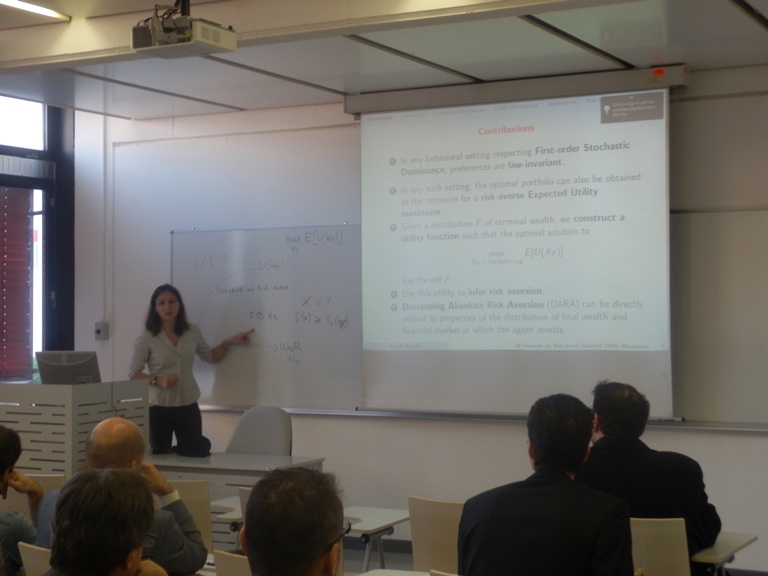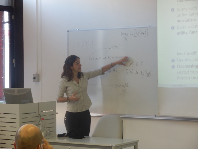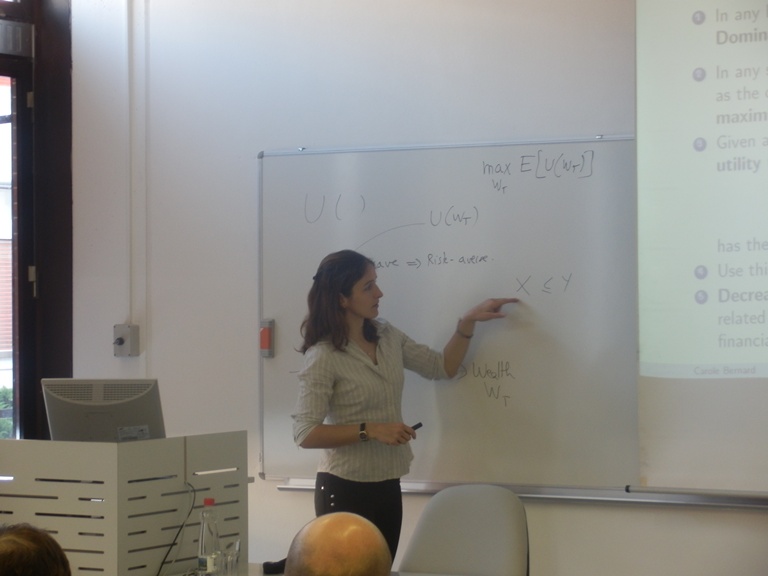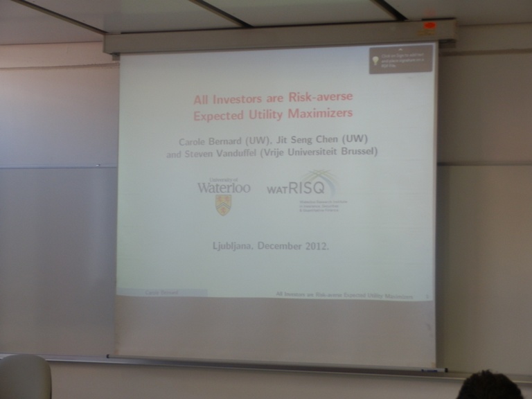 V sredo 19.12. je prof. dr. Carole Bernard, University of Waterloo, (soavtorji: Jit Seng Chen, University of Waterloo and Steven Vanduffel, Vrije Universiteit Brussels) predstavila članek: ˝All investors are risk averse expected utility maximizers ˝.