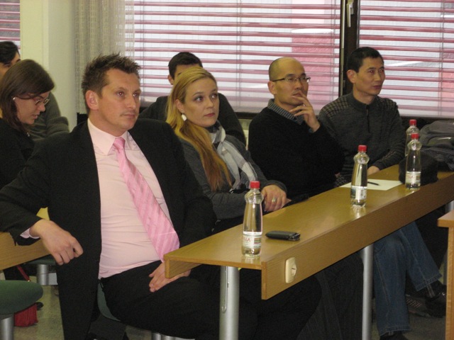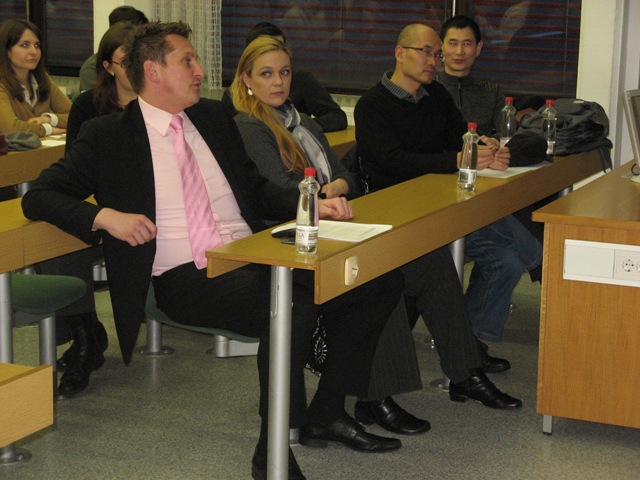 V ponedeljek 25. 3. in torek 26. 3. so pri podiplomskem predmetu International Business Environment v angleškem jeziku potekale zaključne predstavitve skupinskih projektov, povezanih z vstopom podjetja Medex d.o.o. na kitajski trg. V okviru desetih skupinskih projektov, kjer je skupno sodelovali preko 50 domačih in 20 tujih študentov so študenti opravili poglobljene analize povezane s postopki klasifikacije, registracije in uvoznimi postopki za tri različne kategorije izdelkov podjetja Medex. Projekti so potekali pod mentorstvom asistenta dr. Matevža Raškovića ter nosilke predmeta, prof. dr. Maje Makovec Brenčič. Predstavitev pa so se udeležili tudi g. Samo Koren (izvozni direktor v podjetju Medex), ga. Alisa Avšar (generalna sekretarka China and Slovenia Commerce Association), gostujoči profesor dr. Shang (univerza Shanghai Institute of Foreign Trade) ter kitajski direktor Konfucijskega inštituta Ljubljana, dr. Chen Jian.