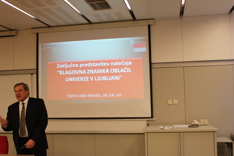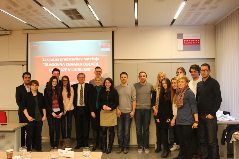 S podelitvijo nagrad najboljšim se je v sredo 20. marca 2013 zaključil natečaj “Blagovna znamka oblačil Univerze v Ljubljani”. Natečaj je v sodelovanju z Muro- evropsko hišo mode razpisala Univerza v Ljubljani. Na natečaju so sodelovali multidisciplinarni timi študentov, ki so samostojno in pod mentorstvom mag. Blaža Zupana, mag. Roka Stritarja iz Ekonomske fakultete in mag. Andreja Učakarja iz Naravoslovnotehnične fakultete izdelali zasnovo blagovne znamke in kolekcije oblačil, načrt trženja in distribucije ter strategijo prodaje. Tekmovale so štiri ekipe: Status, 1919, Utrip in MY point. Zbrane je v uvodu nagovoril dekan prof. dr. Mramor in prorektor prof. dr. Valič.