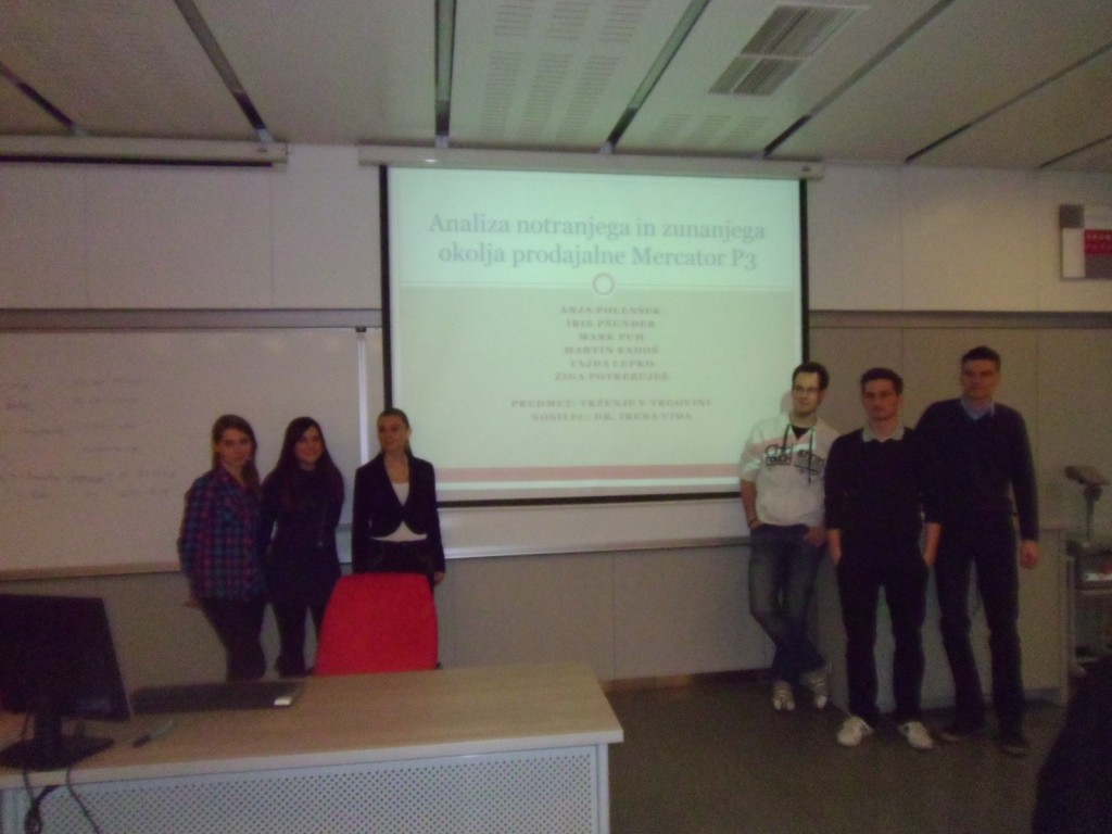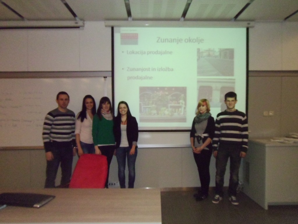 Študenti so v petek 29. marca 2013 predstavili tudi projektne naloge, ki so jih izdelali za podjetja MERKUR, Mercator in DM drogeriemarkt . Pri pripravi projektnih nalog je sodelovalo pet skupin študentov s po 5-6 člani, ki so na osnovi metode opazovanja prodajnih mest oblikovali priporočila za podjetje glede izboljšav notranjega in zunanjega okolja prodajalne ter odgovorili na specifična vprašanja v povezavi s posamezno poslovalnico, ki so jim jih v izhodiščih projekta postavila podjetja.