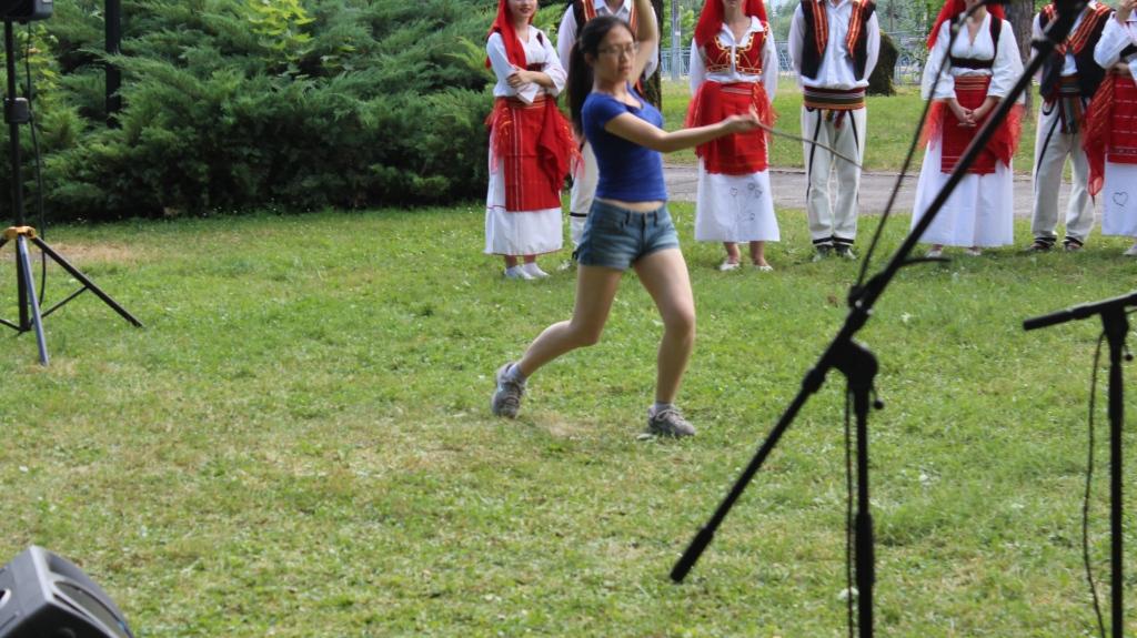 Dogodek je potekal na zelenici pred Kulturnim centrom, vsaka manjšina pa se je predstavila na različne načine. Poskusili smo odlične srbske dobrote, poslušali slovenske narodne pesmi, si ogledali nastop albanske folklorne skupine itd. Naša učiteljica Ding Zhonghui pa se je predstavila z nastopom Taiji s palico.