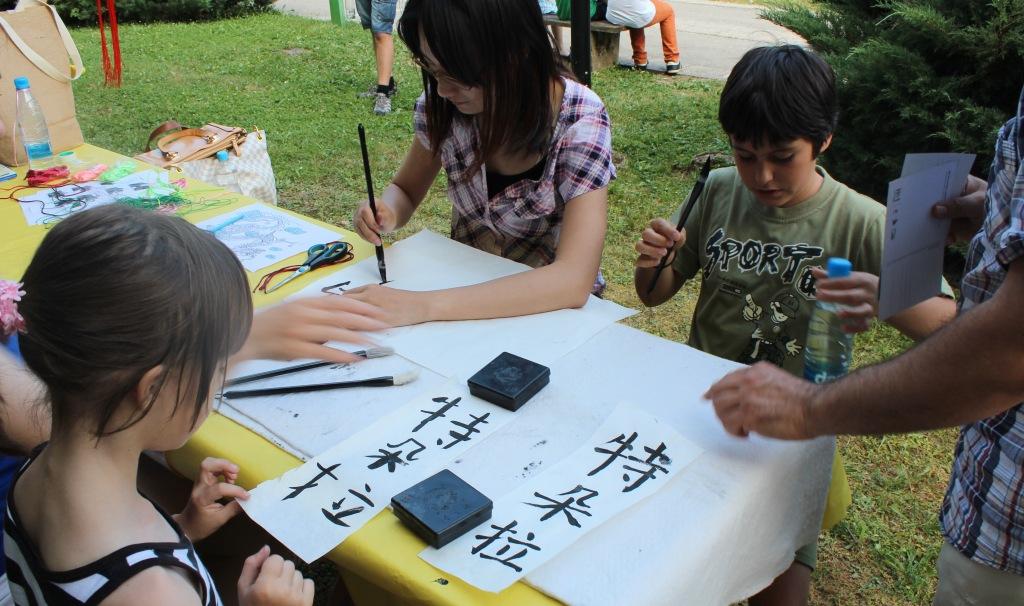 V soboto 22. junija se je ekipa Konfucijevega inštituta odpravila v Novo mesto, kjer je pred Kulturnim centrom Janeza Trdine potekal Teden kulture. Predstavile so se vse manjšine Novega mesta. Tudi mi smo postavili svojo stojnico in novomeščanom predstavili kitajsko kaligrafijo, kitajske vozle, poletno šolo v Novem mestu za otroke,…itd.