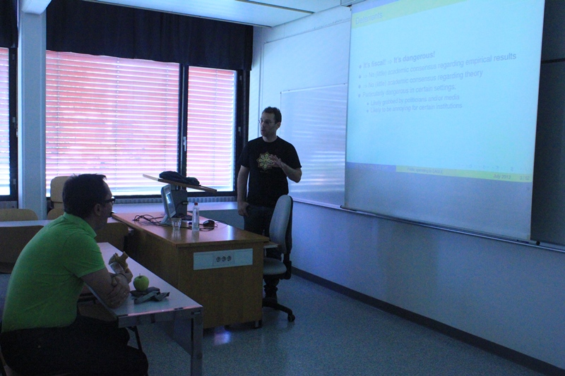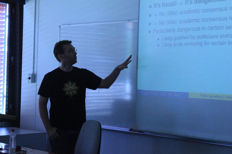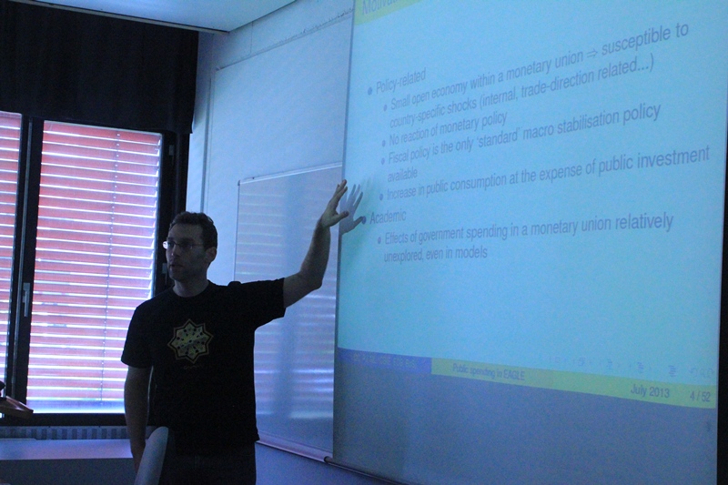 - v sredo, 3.7. je Matija Lozej, Banka Slovenije (soavtorji: Daragh Clancy, Central Bank of Ireland in Pascal Jacquinot, European Central Bank), predstavil članek: ˝The effects of Government Spending in a Small Open Economy within a Monetary Union˝.