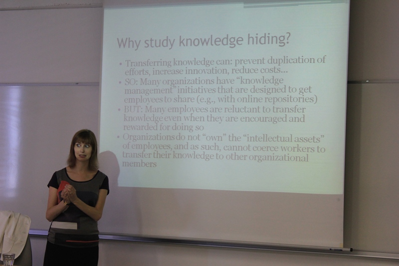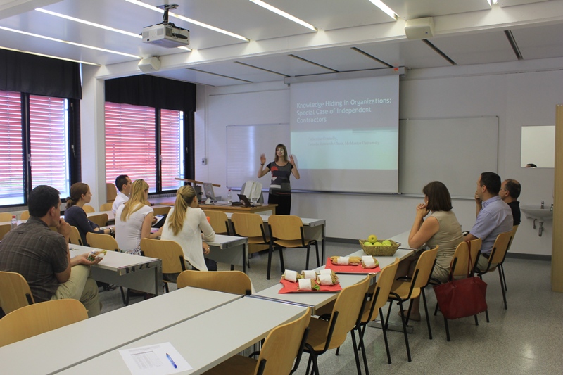 - v četrtek, 4.7. je prof. dr. Catherine Connelly, DeGroote School of Business McMaster University, Kanada predstavila članek: “Knowledge Hiding in Organizations: Special Case of Independent Contractors”.