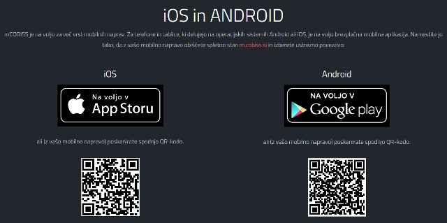 Za telefone in tablice, ki delujejo na operacijskih sistemih Android ali iOS, je na voljo brezplačna mobilna aplikacija. Namestite jo tako, da z vašo mobilno napravo obiščete spletno stan m.cobiss.si in izberete ustrezno povezavo.