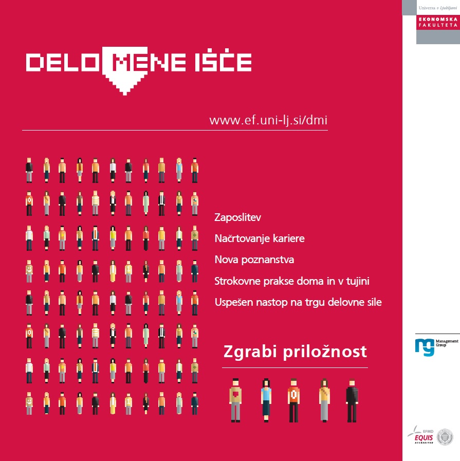 Ekonomska fakulteta (Center za razvoj in svetovanje študentom v sodelovanju z Management Group) bo 16. aprila 2014 organizirala že 11. tradicionalni karierni dan »Delo MeNE išče«.