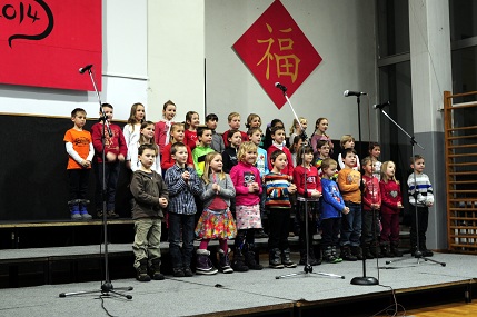 Na petkovem praznovanju so nastopali skoraj vsi učenci in dijaki, ki obiskujejo pouk kitajskega jezika, razen najmlajših iz vrtca, ki so za to prireditev bili resnično premajhni. Nastopajočih je bilo tako okoli 100. Najmlajši učenci OŠ Orehek in podružnične šole Mavčiče, skupina od 1. do 3. razreda je zapela pesem Xin Nian Hao, skupina učencev od 3. do 5. razreda je zapela pesem Ni Wa Wa , najstarejši osnovnošolci, skupina od 6. do 9. razreda pa pesem Chuntian Zai Na Li.