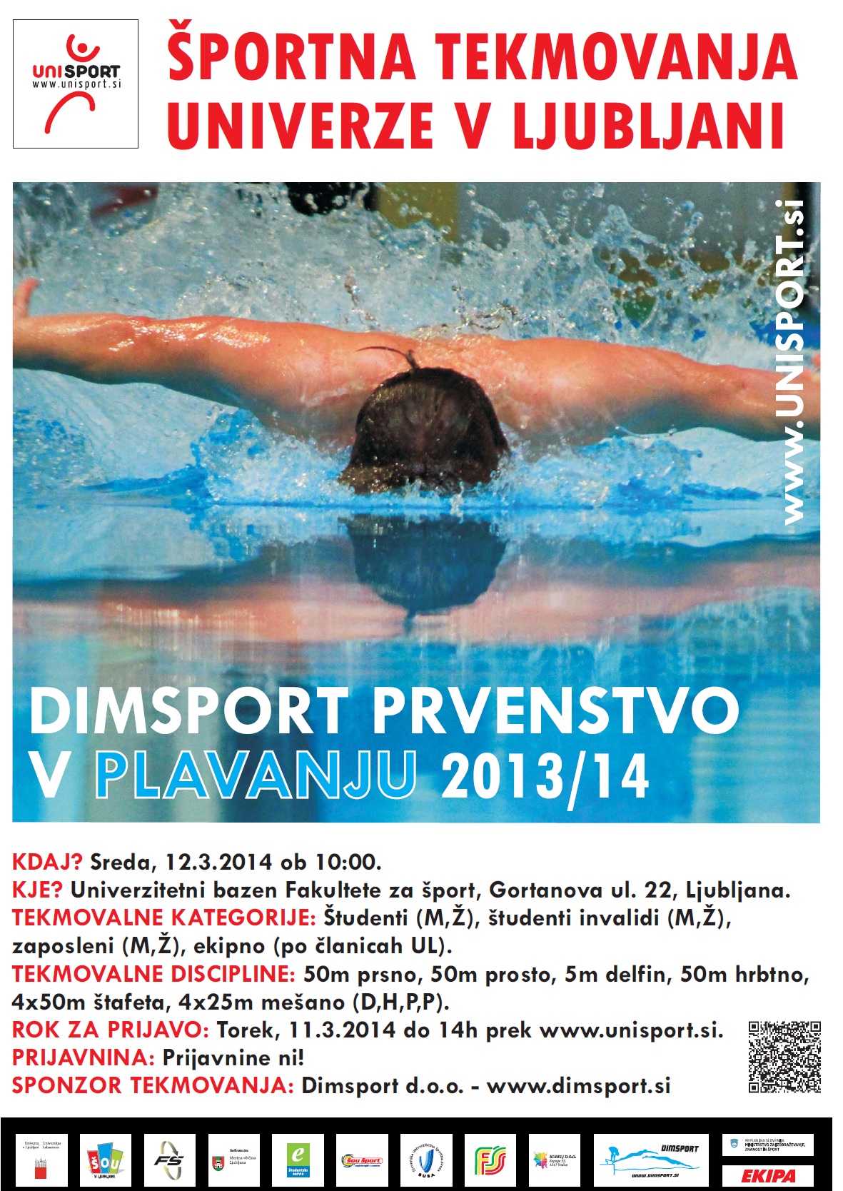 Razpis DIMSPORT prvenstva Univerze v Ljubljani v plavanju za študijsko leto 2013/14