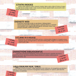 - 9. maja – “Citatni indeksi”: na tečaju bodo predstavili citatne indekse: kaj so, kako jih lahko uporabite pri svojem raziskovalnem delu; predstavili bodo različne načine iskanja in dela s citatnimi indeksi. Poudarek bo na zbirkah citatnih indeksov Web of Science in Scopus ter možnostih, ki jih ponujajo. Nekaj besed bo tudi o drugih virih, ki se ukvarjajo z merjenjem citiranosti. Podrobneje bodo predstavili faktor vpliva, možnosti iskanja najvplivnejših znanstvenih revij, ustavili pa se bodo tudi pri nekaterih drugih kazalcih citiranosti (V JCR in drugje). Na tečaju udeleženci opravite tudi nekaj praktičnih vaj.
