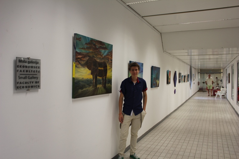 Avtor letošnje poletne razstave, z naslovom »Barvitost nadrealnega«, je Maks Tušak, komaj štirinajst letni mladenič. Z neverjetno energijo, samozavestni devetošolec, v pogovoru razkriva navdušenje in strast do umetnosti. S slikarstvom se je srečal po srečnem naključju, iz radovednosti pa se je rodila velika ljubezen. »Talent nadgrajujem na delavnicah, v društvu Me Vi Art, pod mentorstvom Metke Gosar. Brez nje ne bi prišel do točke na kateri sem.«