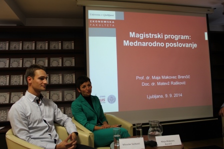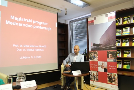 V torek, 9. septembra 2014, je v Kozorciju Mladinske knjige v centru Ljubljane potekala razprava o mednarodnem poslovanju. Program Mednarodno poslovanje je predstavila prof. dr. Maja Makovec Brenčič, vodja programa, študentsko izkušnjo pa je z nami delil Miroslav Vučković.