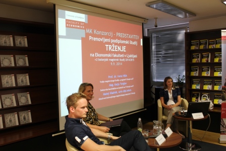 Istega dne, 9. septembra 2014, je bilo na vrsti trženje. Prenovljeni podiplomski magistrski program Trženje je predstavila vodja programa prof. dr. Irena Vida skupaj z mag. Katjo Terglav, pridružil pa se nam je tudi absolvent magistrskega programa Matej Hladnik, ki je z udeleženci delil izkušnje in odgovoril na njihova vprašanja.