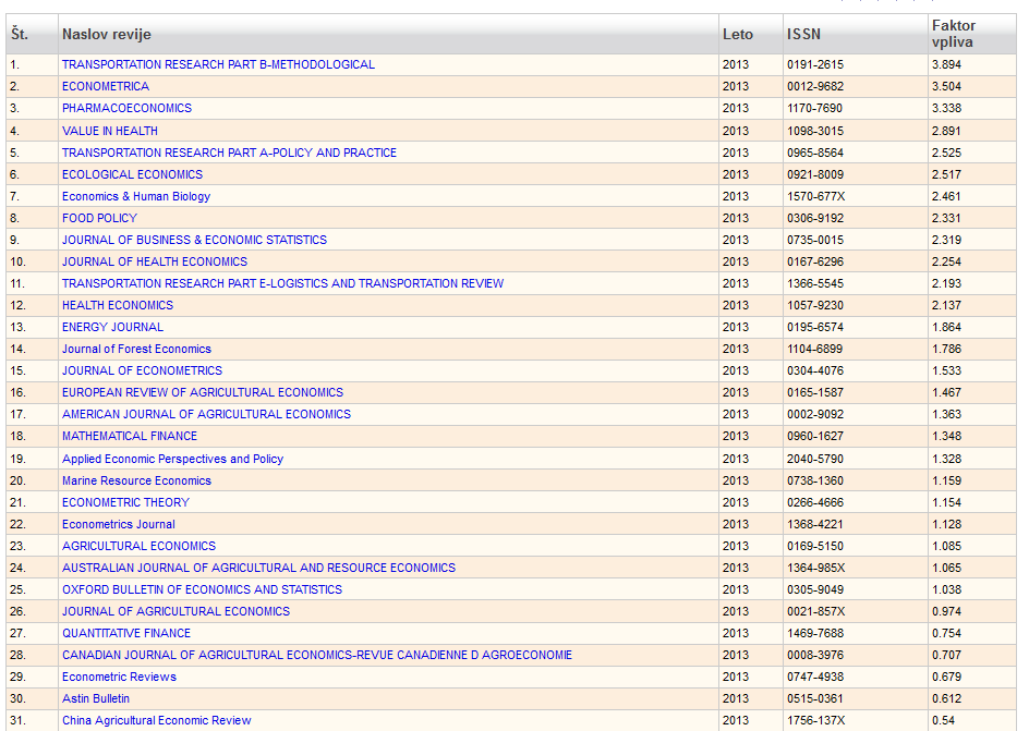 Iz Instituta informacijskih znanosti so nas obvestili, da so v sistemu COBISS.SI v bazo JCR dodani podatki o faktorjih vpliva za leto 2013: Faktor vpliva 1994-2013.