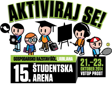 Študentska arena je od 21. do 23. oktobra 2014 na Gospodarskem razstavišču v Ljubljani poskrbela za prijetno druženje, slikovite sejemske prostore, fotografsko razstavo, nove podjetniške priložnosti, izobraževalne dogodke, zabavo, šport in kulturne poslastice.