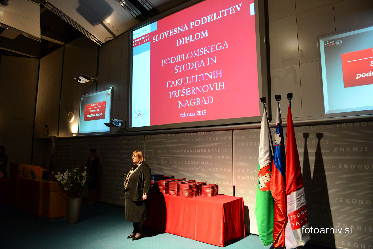 17. februarja 2015 je Ekonomsko fakulteto (EF) preplavilo slavnostno vzdušje. Ponosni študentje podiplomskega študija ter prejemniki fakultetnih Prešernovih nagrad so se ob 17. uri zbrali v Veliki dvorani, kjer se je odvila svečana podelitev njihovih diplomskih listin.