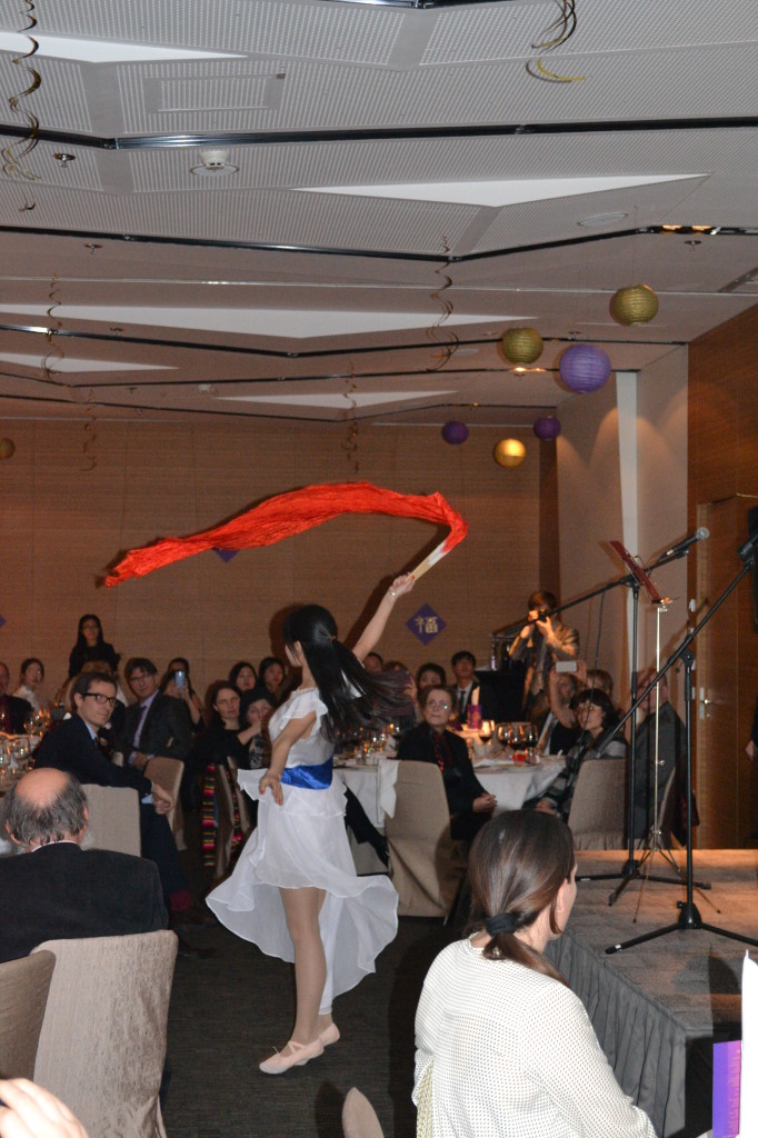 Med nastopajočimi na praznovanju so bili gospod Matej Zupan, flavtist in prorektor Univerze v Ljubljani ter gospa Jana Rošker, profesorica na Filozofski fakulteti, Oddelek za Azijske in Afriške študije, ki je nastopila z interpretacijo šanson v angleškem in kitajskem jeziku. Poleg glasbenih nastopov sta učiteljici kitajskega jezika gospodična Wang Xiao ter gospodična Zhang Lulu, gostom večera predstavili kitajski tradicionalni ples s pahljačo in ples narodne manjšine »Dai«.