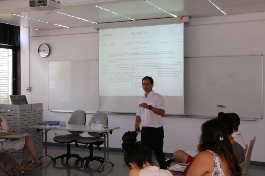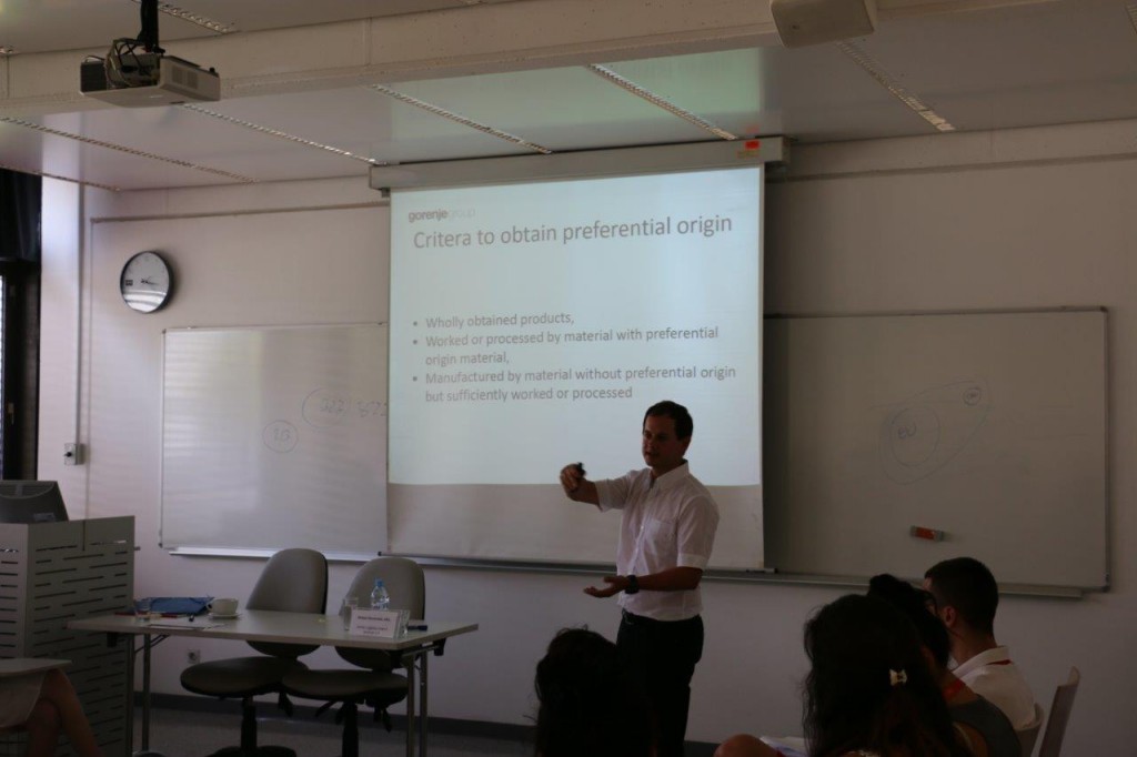 V uvodnem nagovoru je profesorica Zajc Kejžar poudarila, da je Evropska unija sklenila oziroma se pogaja za sklenitev vrste pomembnih prostotrgovinskih sporazumov, ki prinašajo evropskim podjetjem številne tržne priložnosti na partnerskih trgih. Izpostavila je, da se narava teh prostotrgovinskih sporazumov v zadnjih letih spreminja v smeri poglobljenih in obširnejših sporazumov, ki ne vključujejo le ukinitev carinskih dajatev temveč tudi določila, ki spodbujajo internacionalizacijo proizvodnje. Sledila je predstavitev praktičnega pomena prostotrgovinskih sporazumov z vidika preferencialne carinske obravnave s poudarkom na pravilih o poreklu. V nadaljevanju je mag. Matjaž Ključevšek, strokovni sodelavec za logistiko v Gorenju, izpostavil vlogo prostotrgovinskih sporazumov ter pravil o poreklu kot orodju za optimizacijo stroškov v podjetju. G. Ključevšek je na primerih prikazal, kako lahko podjetja analizirajo koristi preferencialnega dostopa do tujih trgov ter stroške, povezane z zagotavljanjem preferencialnega porekla proizvodov. Delavnica se je zaključila z obsežno razpravo, kako izkoristiti potencial prostotrgovinskih in investicijskih sporazumov na ravni podjetij.
