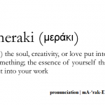 Razstava z naslovom »Meraki« v Galeriji Ekonomske fakultete v Ljubljani je obsegala slike in fotografije različnih tematik in formatov v igrivi postavitvi, hkrati je prepletala medije, leta, občutke in scene z različnih koncev sveta.
