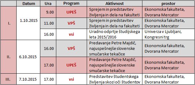Na Ekonomski fakulteti vas bomo sprejeli v četrtek, 1. oktobra 2015 v Dvorani Mercator na Ekonomski fakulteti.