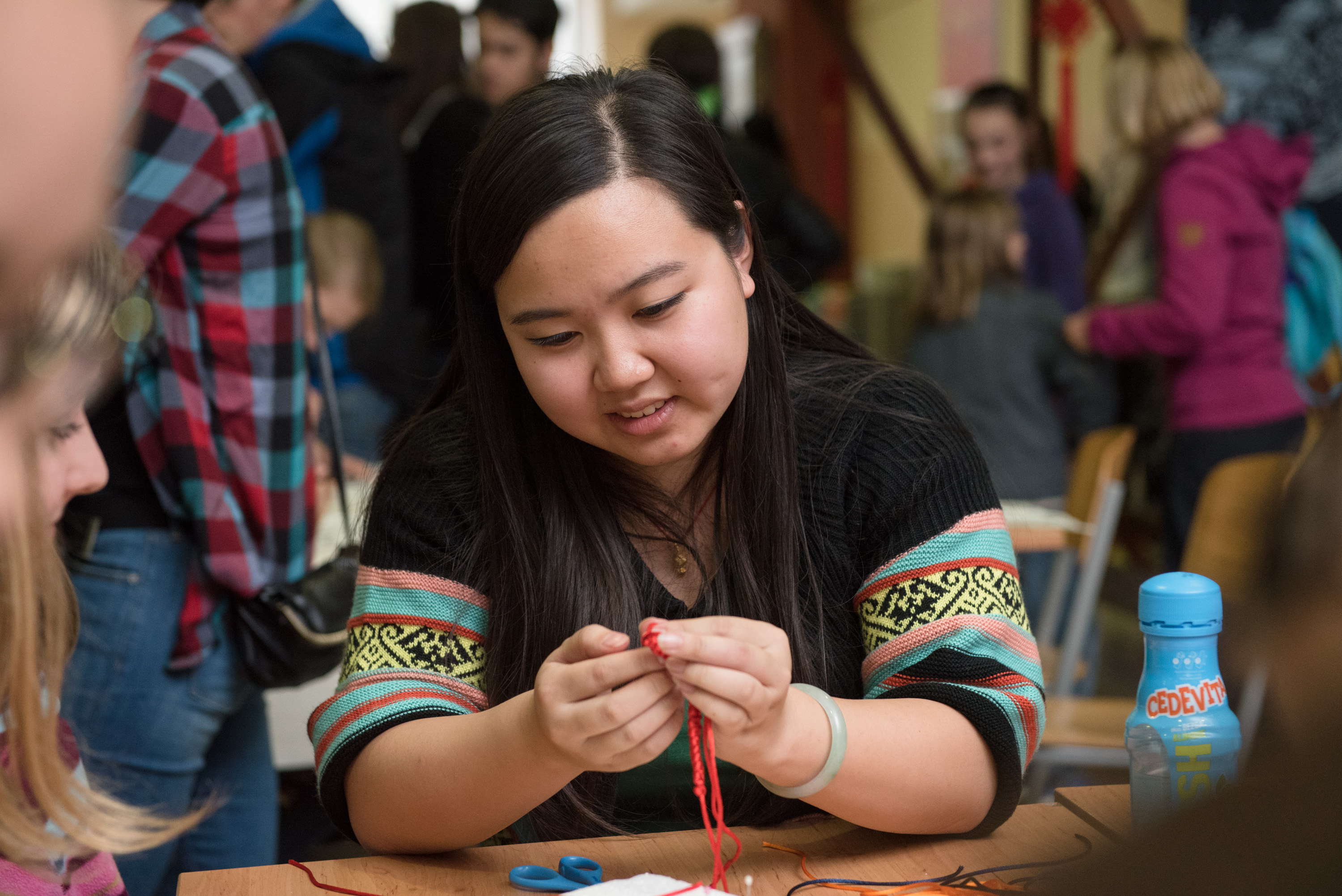 V soboto, 10.10.2015, je na II. gimnaziji Maribor potekal Kitajski dan, kjer smo obiskovalcev na različnih delavnicah kitajskih rokodelskih umetnosti predstavili dejavnosti Konfucijeve učilnice Maribor. Delavnice so vodile kitajske učiteljice Li Yuanjiayue, Jing Ruiqi in Wan Qianqian, otroci različnih starosti pa so se lahko pridružili delavnicam kitajske kaligrafije, kitajskih rezank in delavnici izdelovanja kitajskih vozlov in zapestnic, nad katero so bili najbolj navdušeni. Goste smo tudi pogostili z okusno kitajsko hrano ter jim nudili informacije v zvezi s tečaji kitajščine, ki se izvajajo v Konfucijevi učilnici. Dogodek se je pričel ob 13.uri in zaključil ob 17.uri, otroci pa so z delavnic nasmejanih obrazov odnesli svoje izdelke kitajske umetnosti.