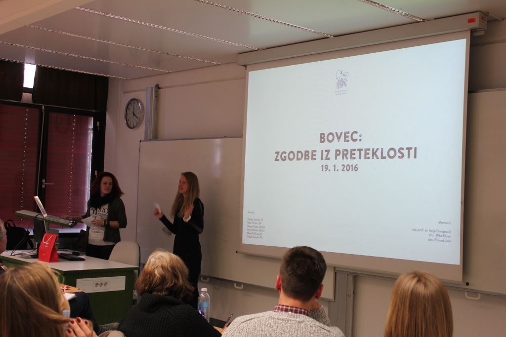 V torek, 19. januarja 2016, je na Ekonomski fakulteti potekala predstavitev študentskih projektnih nalog na temo bovškega turizma. Pri projektu so sodelovale tri fakultete Univerze v Ljubljani: Ekonomska fakulteta, Akademija za likovno umetnost in oblikovanje in Fakulteta za arhitekturo na eni in Občina Bovec, Lokalna turistična organizacija in vrsta bovških ponudnikov na drugi strani. Študentje so v oktobru 2015 obiskali Bovec, kjer so v organizaciji Občine Bovec obiskali nekatere turistične točke, preskusili zip-line in okusili bovško lokalno kulinariko. V toku semestra so nato pod mentorstvom profesorjev, prof. dr. Tanje Dmitrovič (Ekonomska fakulteta), doc. Mihe Klinarja (Akademija za likovno umetnost in oblikovanje) in doc. Primoža Jeze (Fakulteta za arhitekturo), v okviru 11 projektnih skupin pripravili predloge novih in inovativnih turističnih produktov, ki bi lahko prispevali k nadaljnjemu vzponu turizma na destinaciji. Vsako od projektnih skupin so sestavljali študenti vseh treh fakultet, kar je omogočilo resnično interdisciplinarno delo.