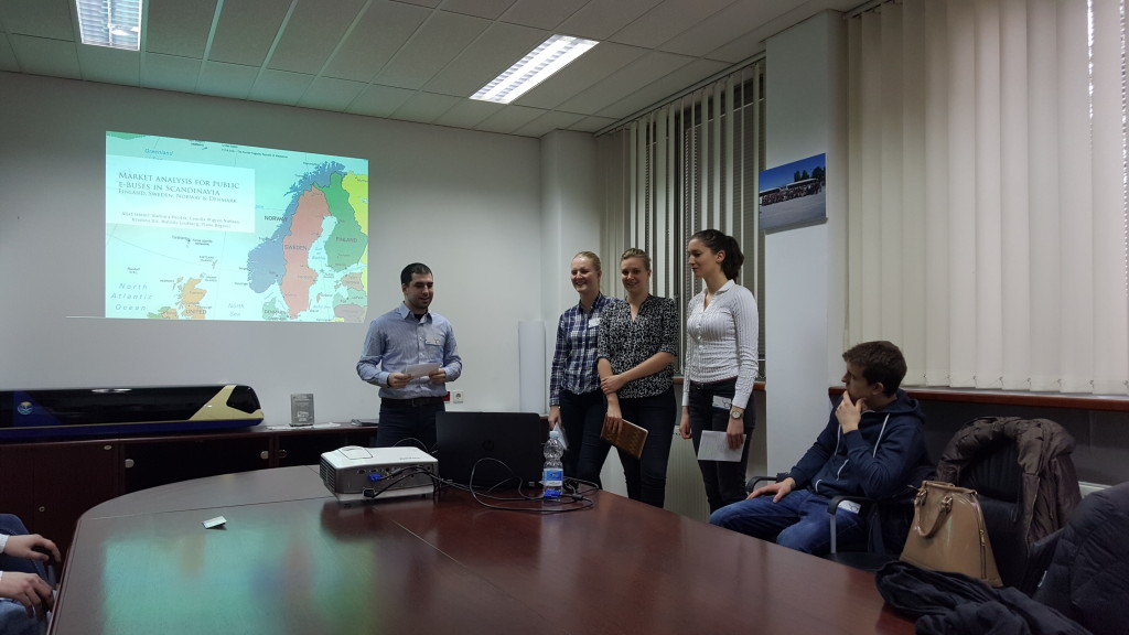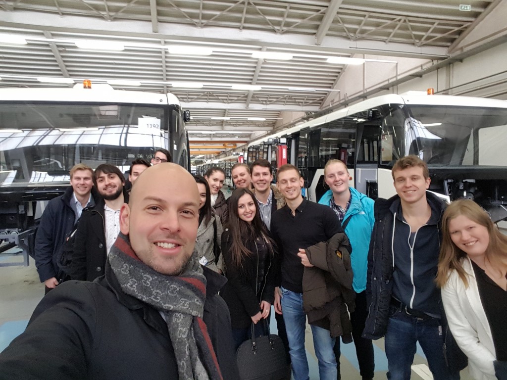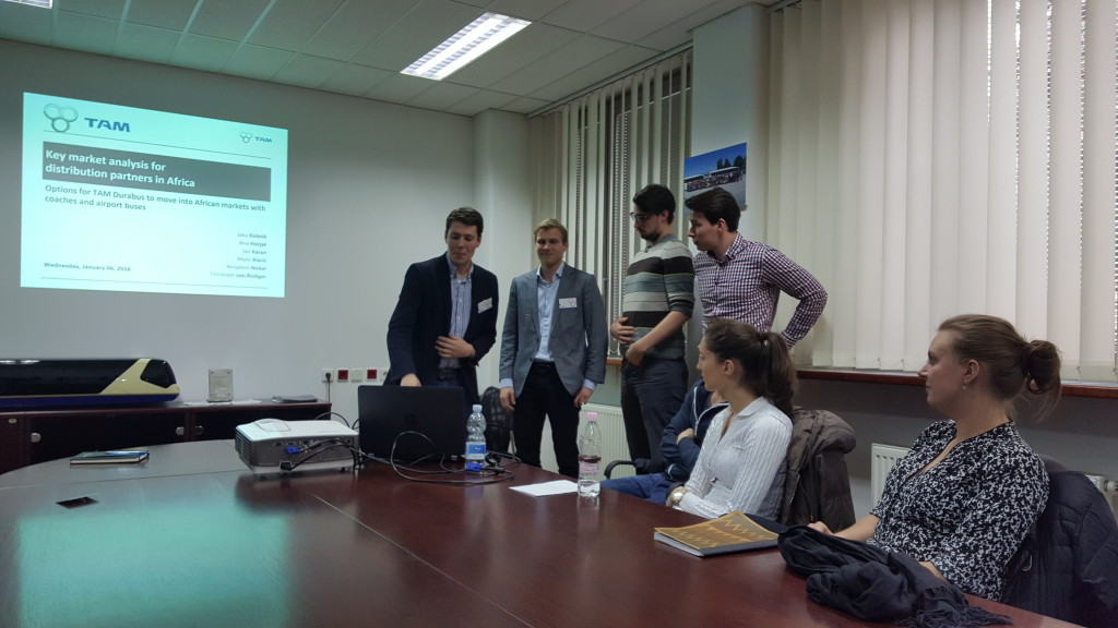 V petek, 15. januarja, je skupina mednarodnih in domačih študentov, v okviru zaključka predmeta International Business Environment, v okviru magistrskega programa International Business, pod vodstvom doc. dr. Matevža Raškovića, obiskala podjetje TAM Europe v Mariboru, ki velja za največjo kitajsko tujo neposredno investicijo v Sloveniji in se ukvarja s proizvodnjo letaliških, turističnih in električnih mestnih avtobusov. Študenti so si najprej ogledali proizvodnjo, se seznanili s prototipom novega električnega mestnega avtobusa Vario, nato pa so tri najboljše skupine tudi predstavile svoje tržne analize pred direktorjem podjetja, g. Holgerjem Postlom in drugimi predstavniki podjetja. Zmagovalni projekti so analizirali trg mestnih električni avtobusov v Skandinaviji ter tržni potencial za letališke in turistične avtobuse v Mehiki ter Afriki.