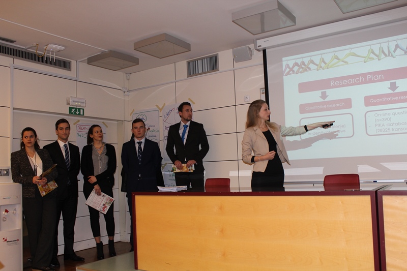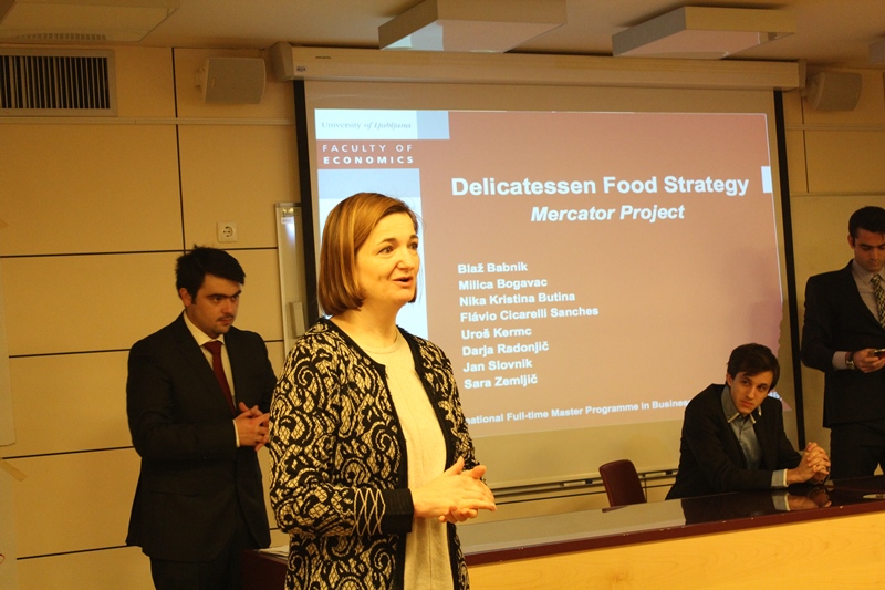 Po zahtevnem 5-tedenskem delu smo študentje Ekonomske fakultete, magistrskega programa poslovodenje in organizacija (IMB), 10. februarja zaključili in predstavili projekte trženjskih strategij za izbrane kategorije v podjetju Mercator, predsedniku uprave gospodu Toniju Balažiču, članu uprave gospodu Igorju Maroši in vodjem posameznih kategorij. Projekt je na IMB-ju že nekaj let stalnica in sodi med najzahtevnejše in najobsežnejše projekte na tem programu, ki ga vodi prof. dr. Janez Prašnikar.