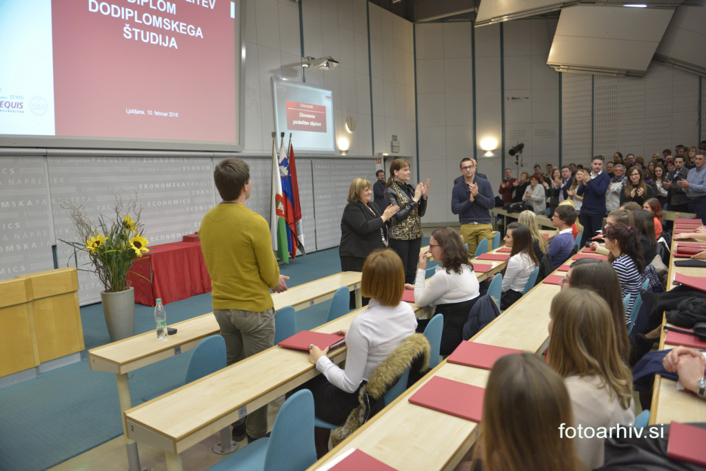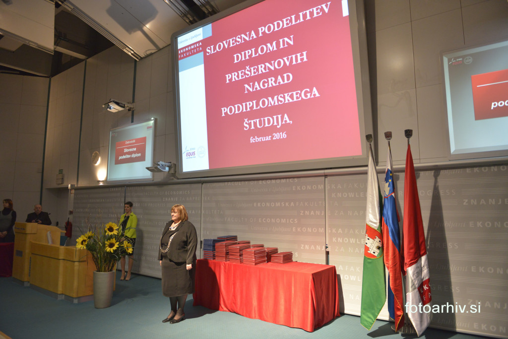 Včeraj, 10. februarja 2016, sta na Ekonomski fakulteti potekali slovesna podelitev diplom diplomantov dodiplomskega in podiplomskega študija in podelitev fakultetnih Prešernovih nagrad.