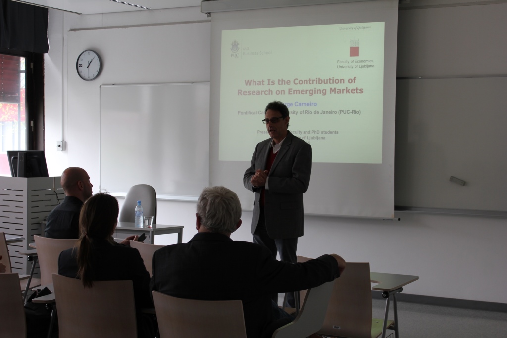 Raziskovalni center Ekonomske fakultete je organiziral znanstveno-raziskovalni seminar, ki je potekal v ponedeljek, 18. aprila 2016. Jorge Carneiro (Pontifical Catholic University of Rio de Janeiro (PUC-Rio) je predstavil članek: »What is the contribution of research on emerging markets?«.